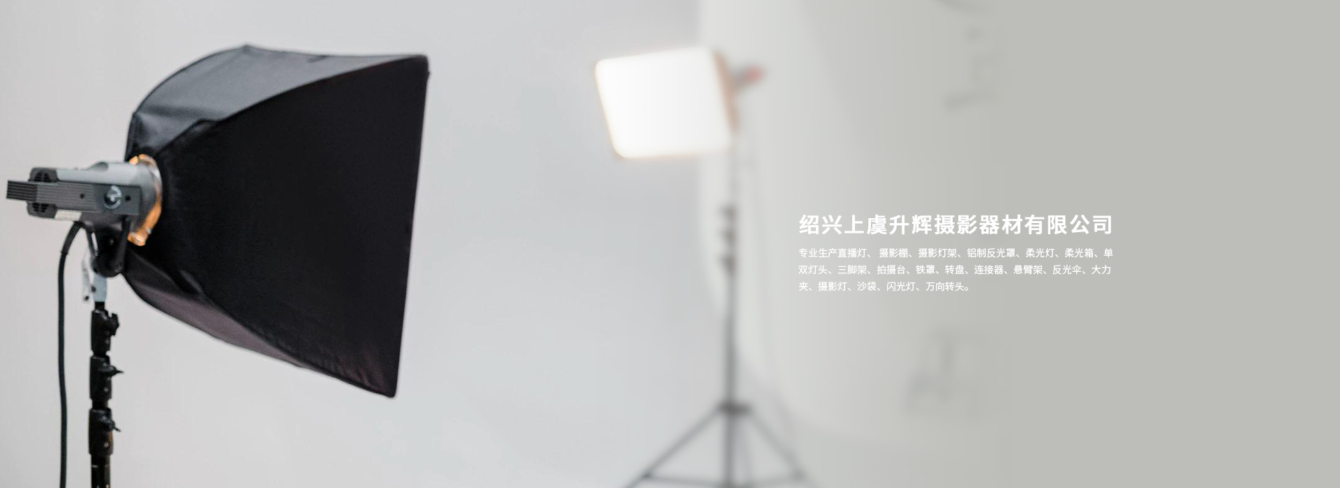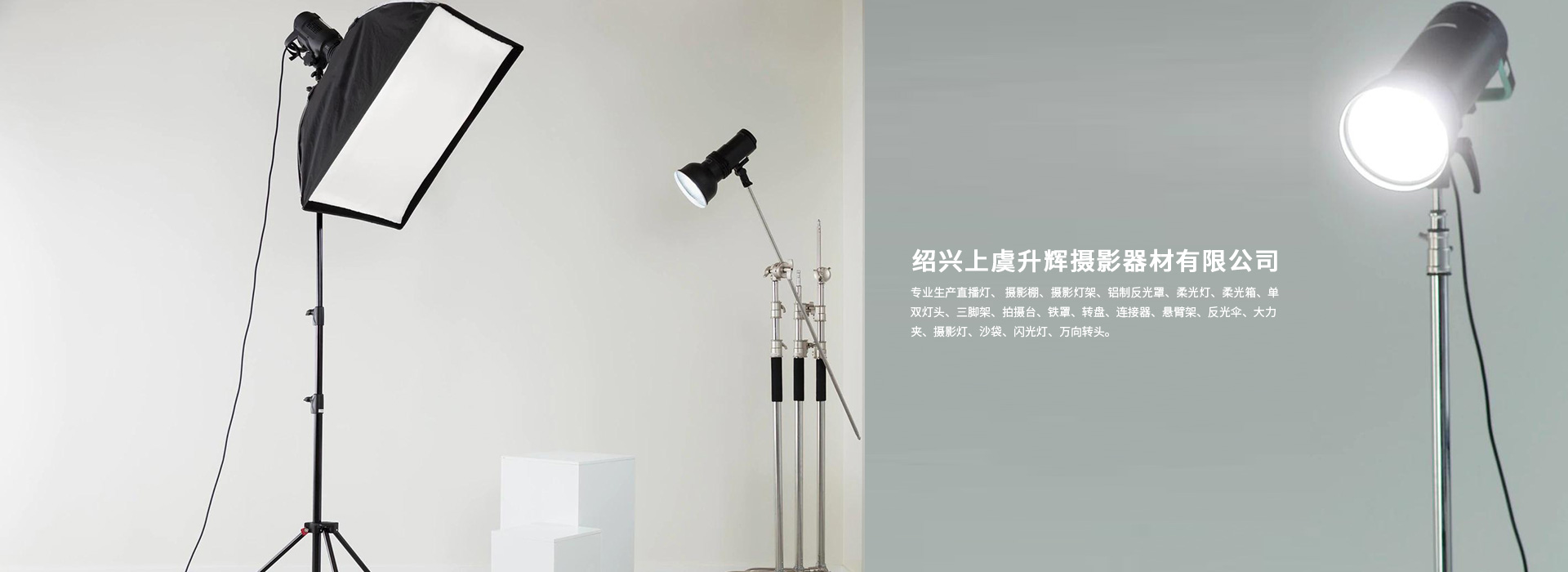 紹興上虞升輝攝影器材有限公司專(zhuān)業(yè)生產(chǎn)直播燈、 攝影棚、攝影燈架、鋁制反光罩、柔光燈、柔光箱、單雙燈頭、三腳架、拍攝臺(tái)、鐵罩、轉(zhuǎn)盤(pán)、連接器、懸臂架、反光傘、大力夾、攝影燈、沙袋、閃光燈、萬(wàn)向轉(zhuǎn)頭。